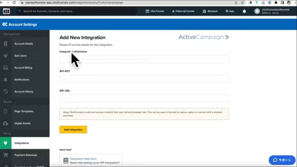 ActiveCampaignとClickfunnelsを連携する流れを開設