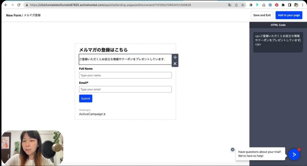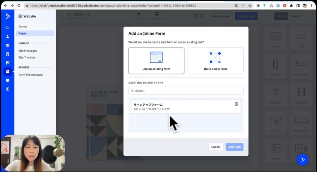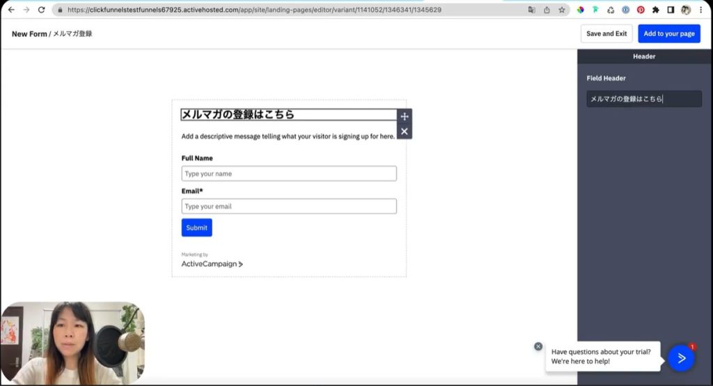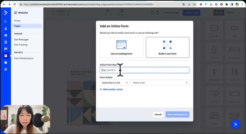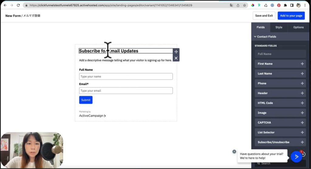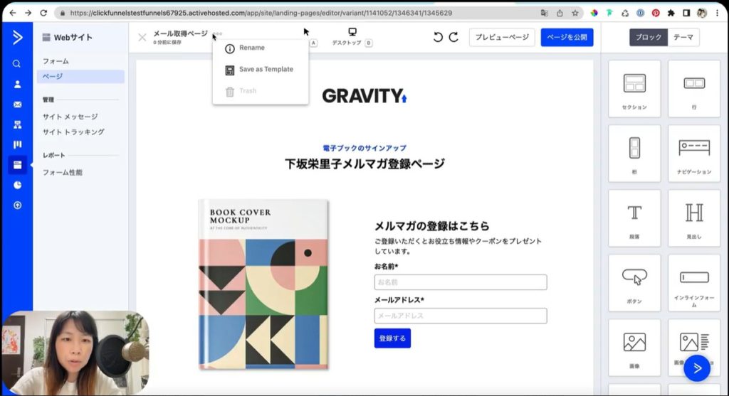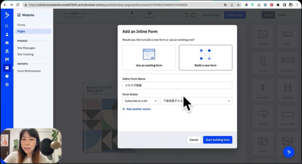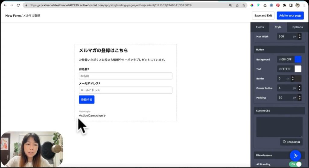 それでは早速ActiveCampaignのメール取得画面の作り方を、実演して解説していきましょう。