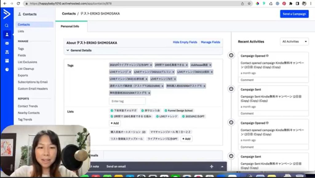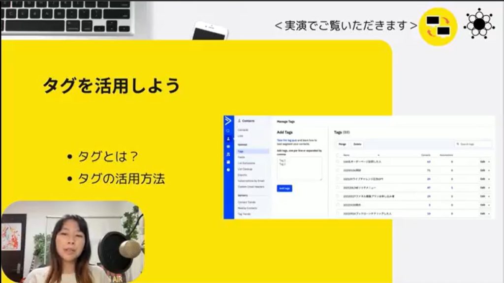 ActiveCampaignにおけるタグの活用方法について、ここから実演付きで紹介します。皆さんも手を動かしながら、「タグはこうやってつけるのか!」とわかっていただければ嬉しいです。