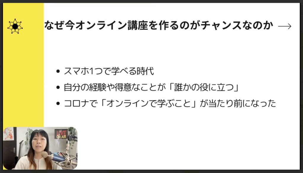 今回は「なぜ今オンライン講座を作るのがチャンスなのか」について詳しく解説をしていきます。主に3つのポイントがあります。