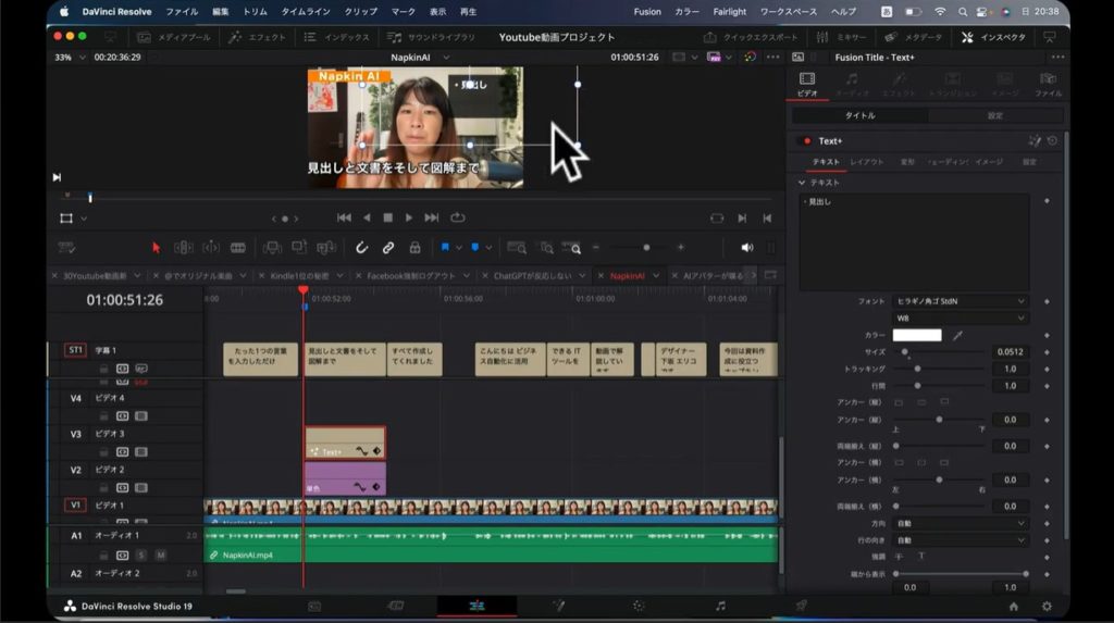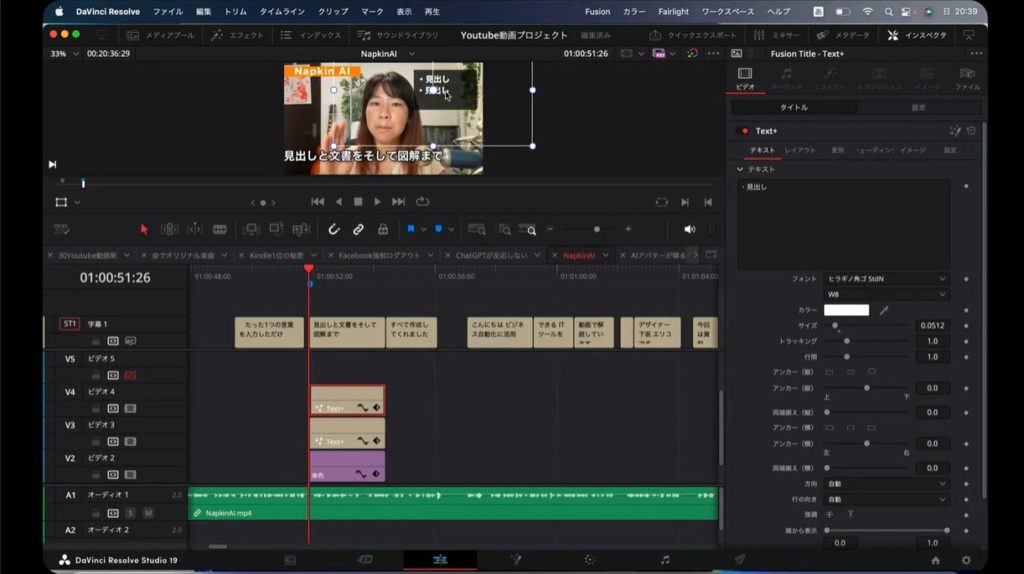 箇条書きをYouTube動画に入れるのも、Davinci Resolveで比較的簡単にできます。Davinci Resolveを用いれば、こちらの話すタイミングで別々に箇条書きを表示できるのでその辺のところも解説していきたいと思います。