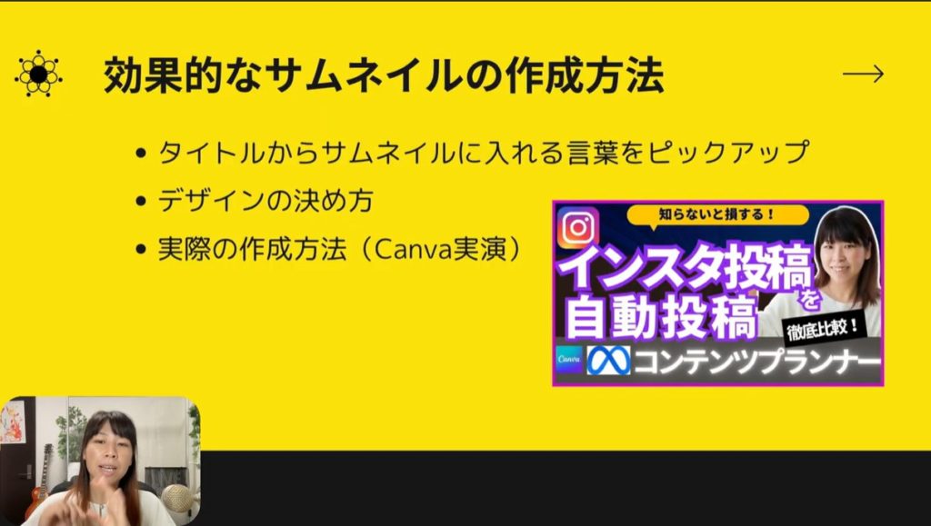 今度はYouTubeのクリック率を上げるサムネイルの作成方法です。ここでは以下の3つのポイントに分けて解説していきます。