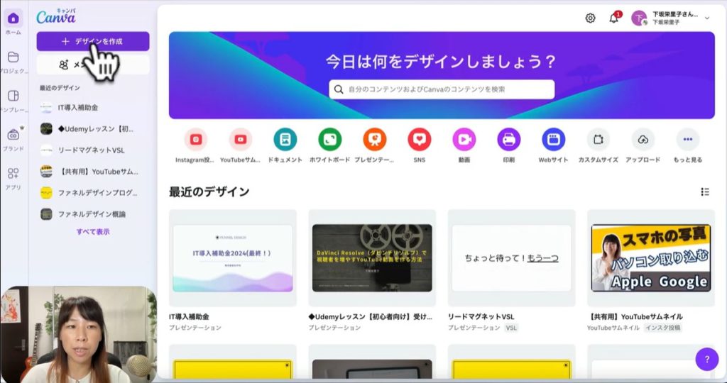 まずはCanvaを開きましょう。すると、以下のスクショのような画面になるはずです。