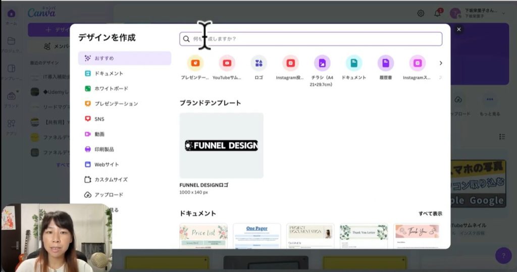 左上のところにある「デザインを作成」というところをクリックしてください。すると以下のような画面が表示されるはずです。
