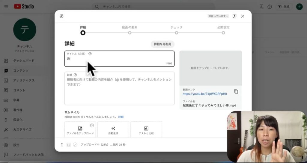 最後は文字数の参考例についてです。以下のスクショを見てください。こちらはYouTubeへ動画をアップするにあたっての設定画面です。