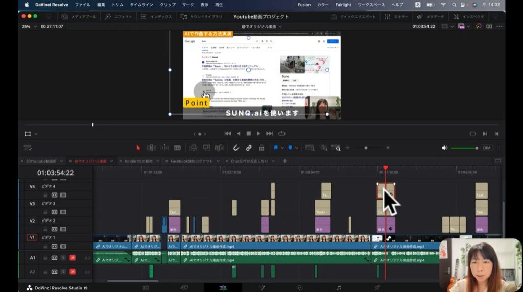 Davinci Resolveの操作方法を理解するためには以下の4つのポイントを押さえておく必要があります。