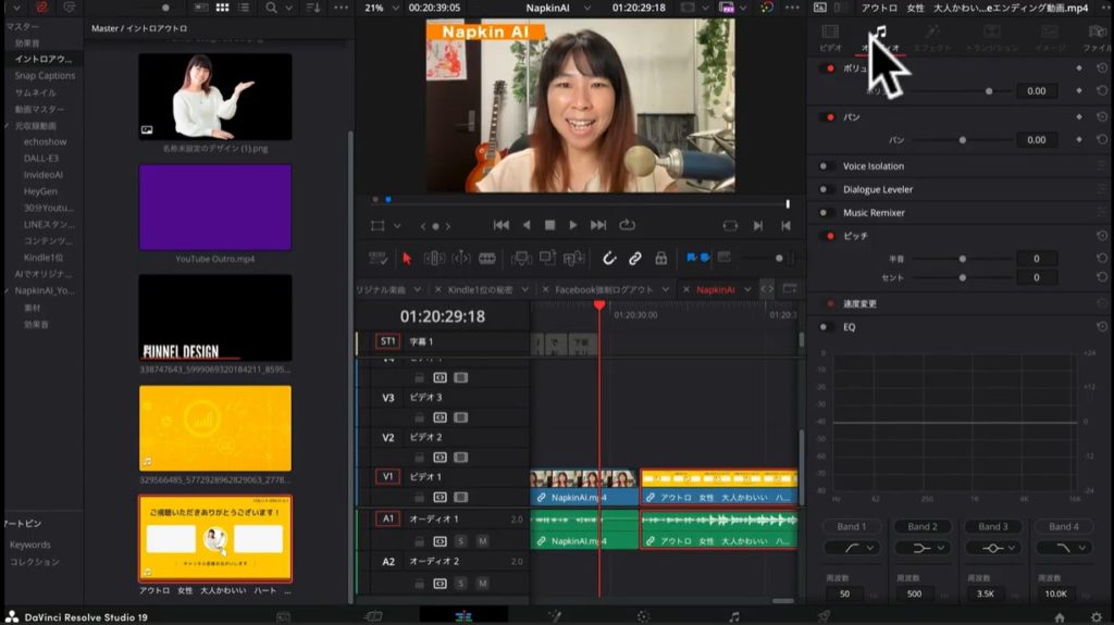 また音声を入れたアウトロ素材を制作したのであれば、本編とボリュームが同じくらいになっているか、確認しましょう。急にアウトロの音声だけ大きいとバランスが悪いので、音量の調整もしてください。