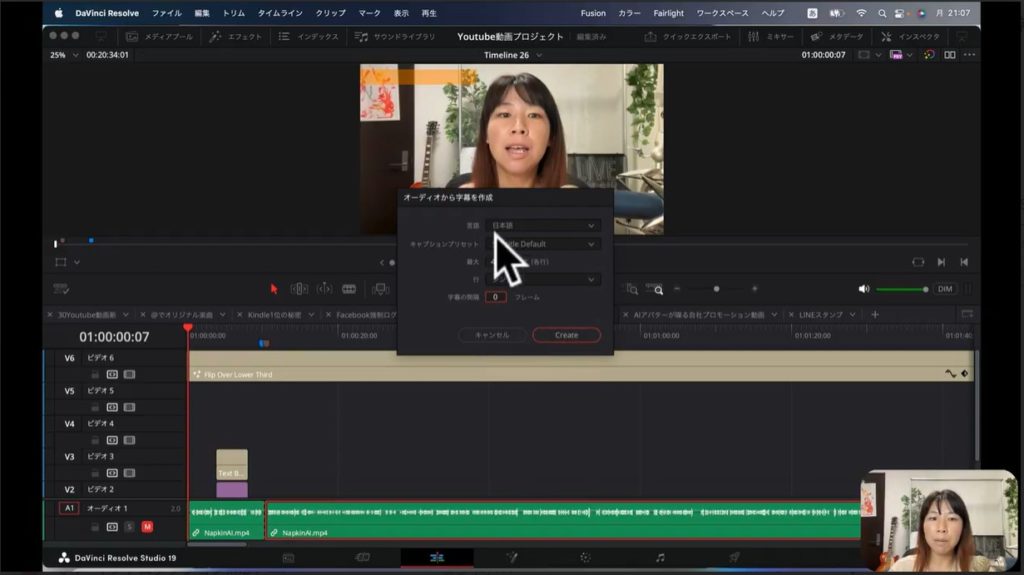 これだけで、Davinci Resolveの方で勝手に字幕を作ってくれます。字幕の入れ方は、実は非常に簡単です。