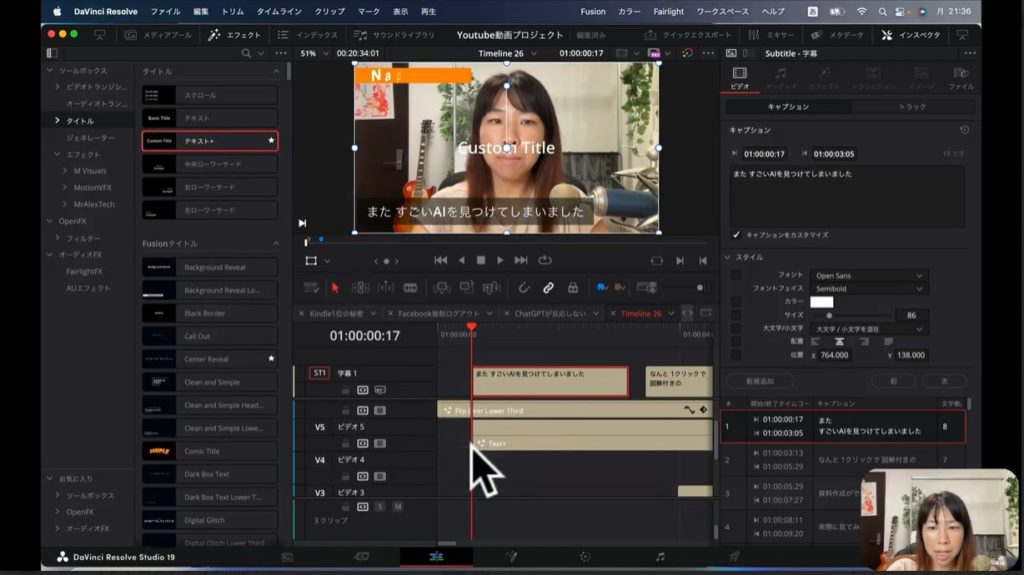ただ最後に紹介したように「この部分はポイントだから強調したい」と思ったときに、Davinci Resolveで字幕を生成する方法もあります。字幕だけでなく、効果音なども加えることで店舗が出て、YouTube動画がより見やすくなります。必要に応じて、自分でも字幕を入れてみませんか?