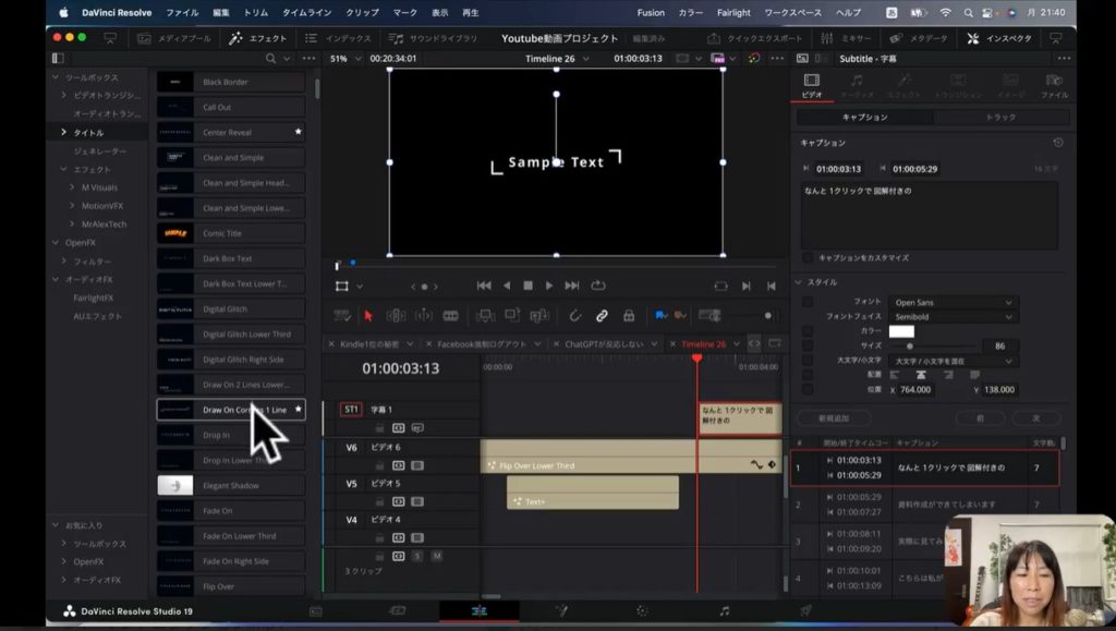 今回は動画制作時の字幕の入れ方について、お話ししました。Davinci Resolveを使用すれば、さまざまな字幕を動画の中に挿入できます。