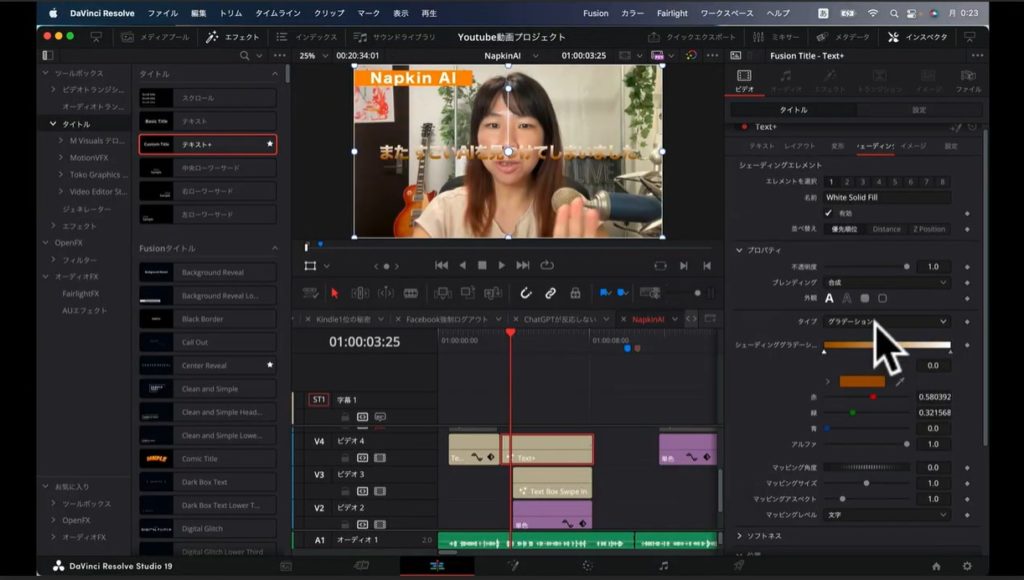 Davinci Resolveでゴールドの文字を作成する手順