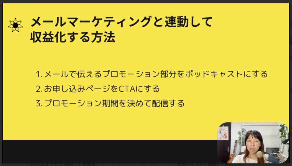 - メールで伝えるプロモーション部分をポッドキャストにする