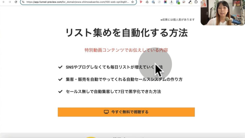 - 無料セミナー(録画)→オファー→高単価商品へ誘導
